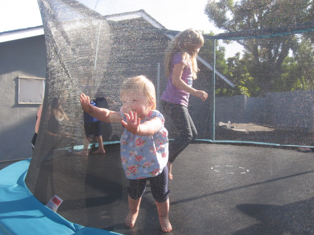 A few weeks back Nicole threw Jeff a dessert party at her parents house for his graduation from Cal State Fullerton. While we were there the grandkids had so much fun on their trampoline in their backyard.....theirs is built into the ground.